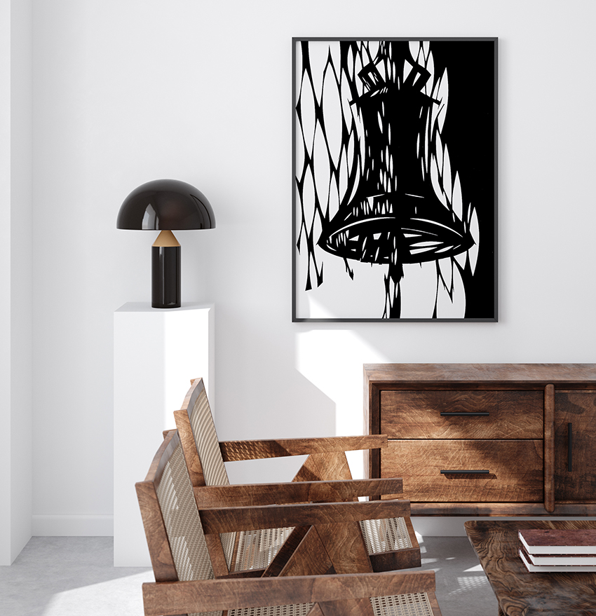 Image: A framed vytynanky bell by 2025 Official Festival Artist, Natalia Didenko.